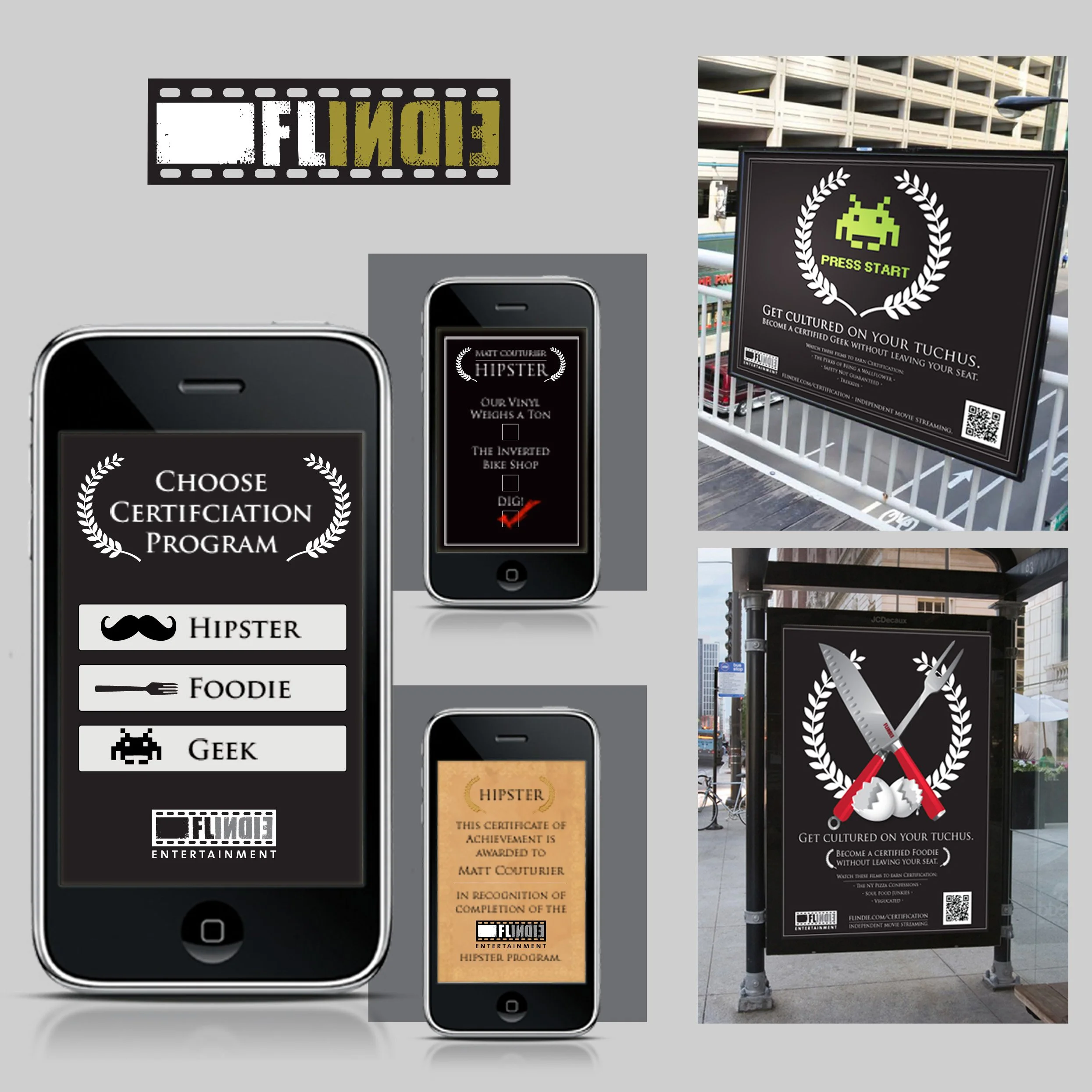 Concept: The launch campaign recalls award graphics like the Sundance Film Festival to leverage brand equity in adjacent spaces. Key audience insights included that people like to feel smart. Creating a launch campaign focused around spare time on public transit, we were able to turn wasted commute time into quick certification time with short commute-length films that created habits around our platform.